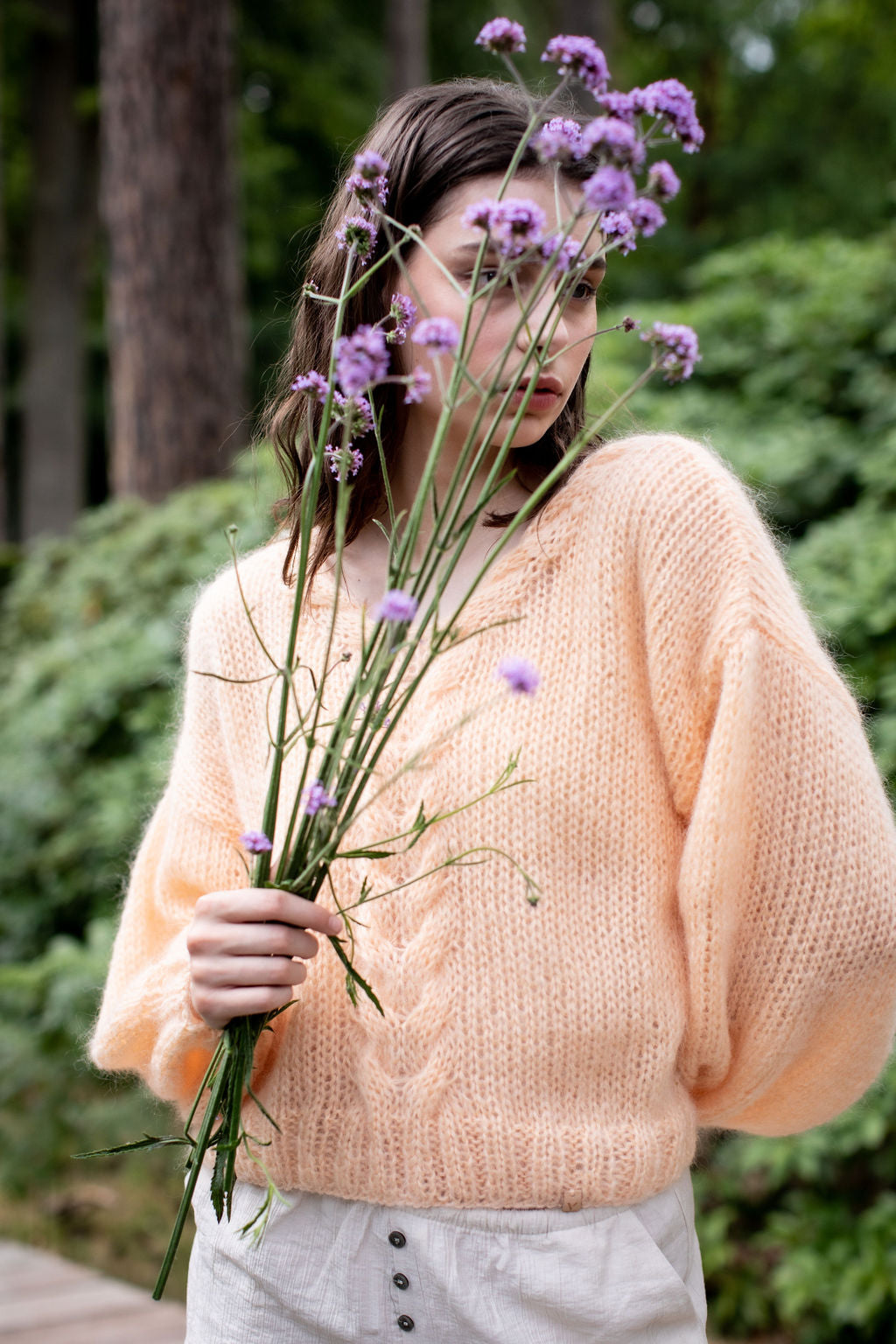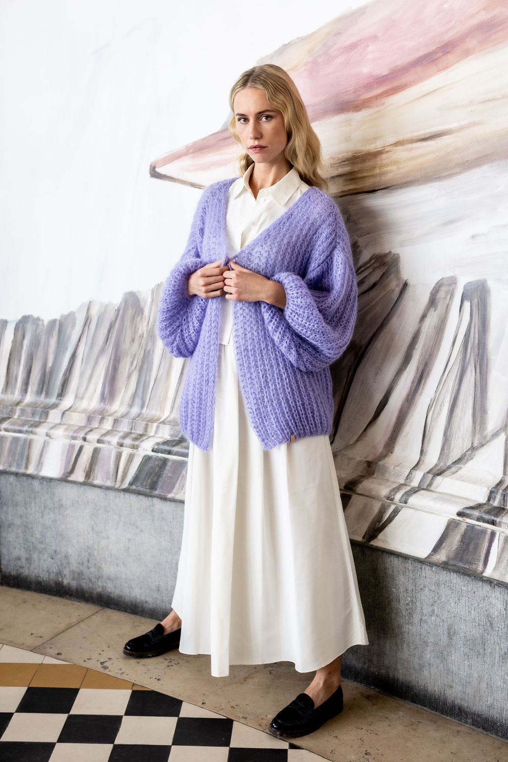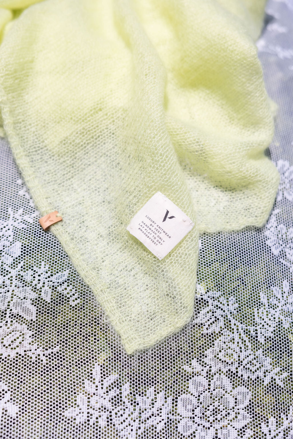 The VEST collection consists of hand-knitted sweaters, cardigans, shawls and beanies. The pieces are executed in feather-light mohair and merinowool.